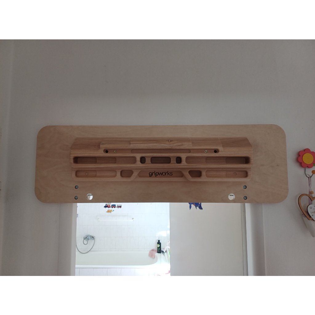 Dřevěný držák z překližky pro všechny možné model hangboardů - lze namontovat snad všechny hangboardy, na které si vzpomeneš, třeba i Beastmaker a další konkurenty, ale samozřejmě i všechny naše hangboardy na stěnu.